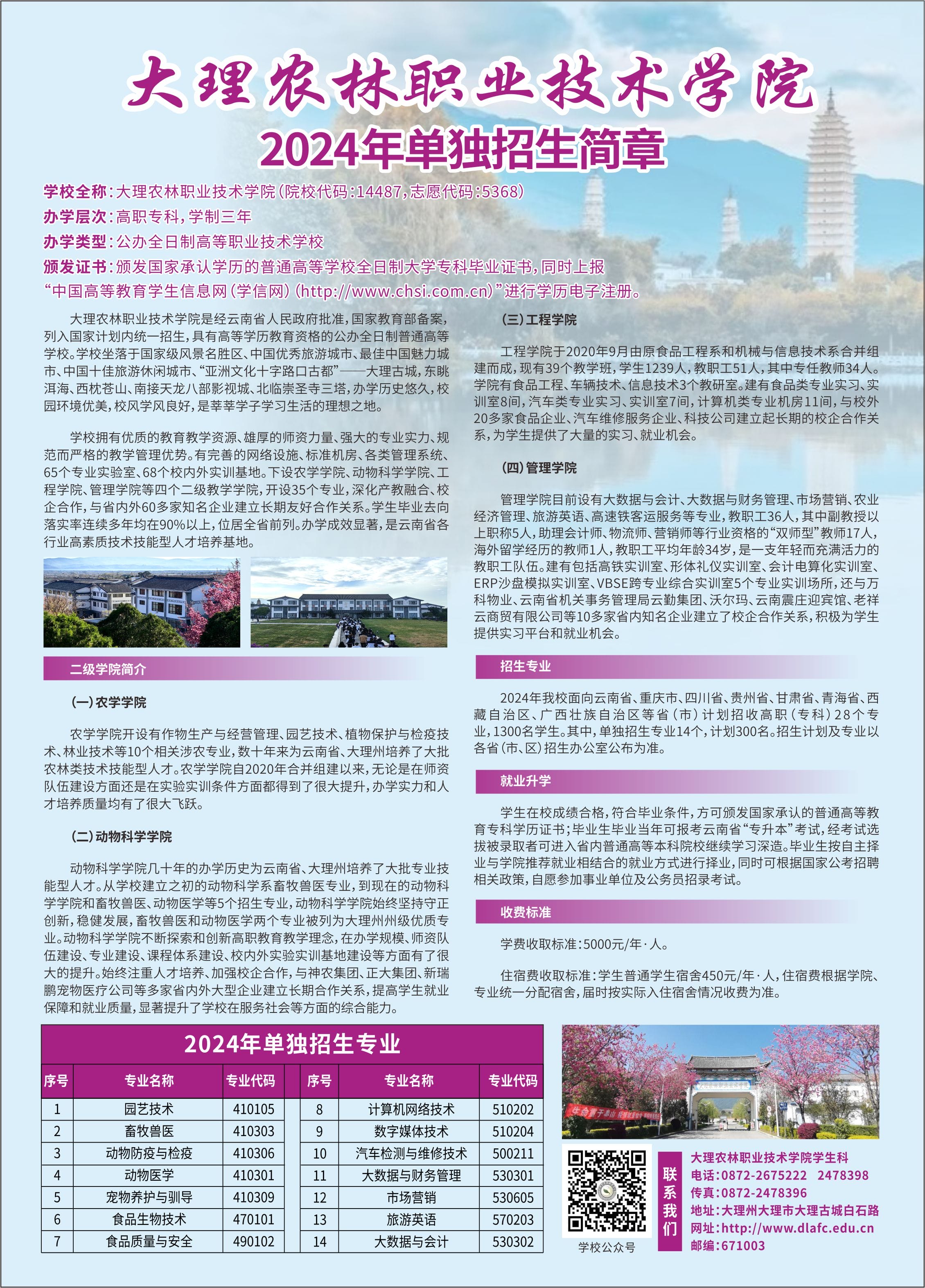 大理农林职业技术学院2024年单独招生简章